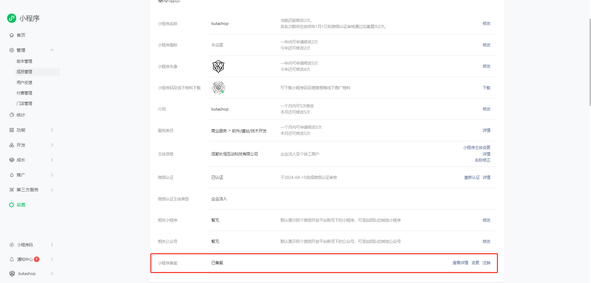 Name, contact phone number, email address, emergency contact information, ID type, ID number, ID validity period, ID photo, and authorization letter of the mini program manager (if the mini program manager is not a legal entity, an authorization letter from the mini program manager is required)After preparing the materials, log in to the WeChat public platform( https://mp.weixin.qq.com )Go to Settings (left sidebar) ->Basic Settings (right side), and scroll down to find Mini Program Filing.